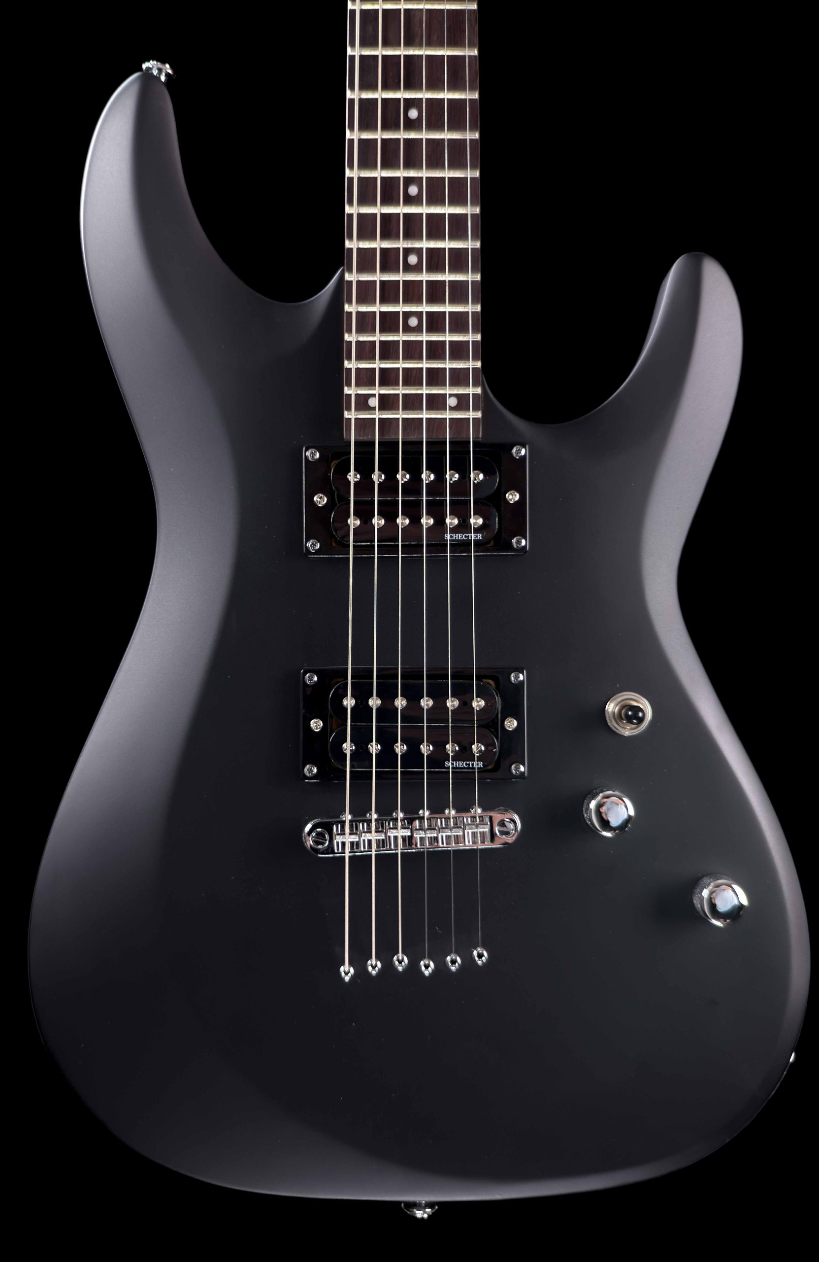 This C-6 Deluxe Satin Black is part of the C-6 Deluxe/Plus models that are the first entry level guitars to bear the Schecter Diamond Series name. A collection that not only looks great, but also combines professional quality, playability and tone to excite and inspire. Equipped with Schecter Diamond Plus pickups, this axe yields extreme clarity and detail. This sleek guitar is a joy to play and a high-quality instrument that any new guitarist will love.